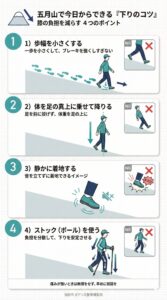 結論:五月山の下りで膝が痛くなる方は、筋力不足だけではなく「足首の動き」と「接地のクセ」で膝に負担が集中しているケースが少なくありません。